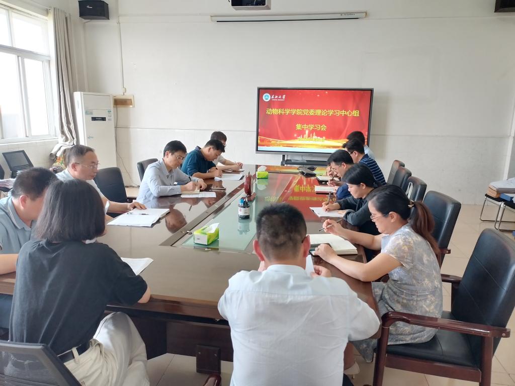 会上,学院动科党支部书记杜晋平领学了“学习贯彻习近平新时代中国特色社会主义思想主题教育工作会议在京召开 习近平发表重要讲话强调 扎实抓好主题教育 为奋进新征程凝心聚力”;辅导员杨湘虹领学了“习近平在中共中央政治局第四次集体学习时强调 把学习贯彻新时代中国特色社会主义思想不断引向深入”;辅导员王海洋领学了“总体国家安全观学习纲要——坚持把政治安全放在首要位置”;辅导员宋宇航领学了“中共中央办公厅印发《关于在全党大兴调查研究的工作方案》”。