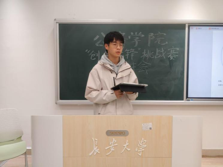 随后,肖梓文登台分享他的参赛经历,从团队建设、项目选题、导师沟通到现场展示等各个环节,都给出了详实的建议。在团队建设方面,他强调了跨学科合作的重要性,建议同学们组建涵盖不同专业背景的团队,以实现知识和能力的互补。在项目选题上,他提醒大家要结合专业特色,关注行业痛点,选择既有创新性又具可行性的课题。此外,他还分享了如何高效地与指导老师沟通、如何在有限时间内优化项目展示等实用技巧,鼓励同学们要勇于尝试,在比赛中不断学习和成长。