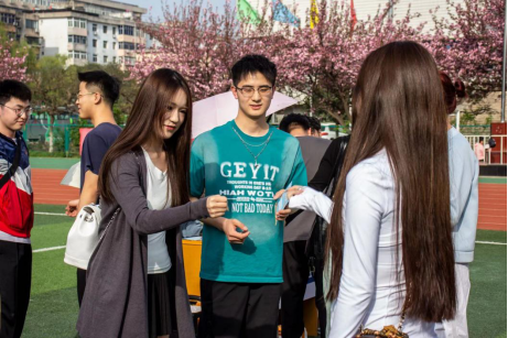 此次联谊活动为搭档组队,抽签分配,男女两人组成小组通过相互配合协作的方式完成各项趣味游戏挑战获取积分,凭累计的积分决出名次、兑换纪念品。活动现场气氛热烈,同学们积极参与,在一片欢声笑语中不断增强同学们的协作能力、情感交流、团队意识及责任意识。
