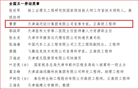 1991届校友 曹景 天津海河设计集团有限公司首席专家,正高级工程师