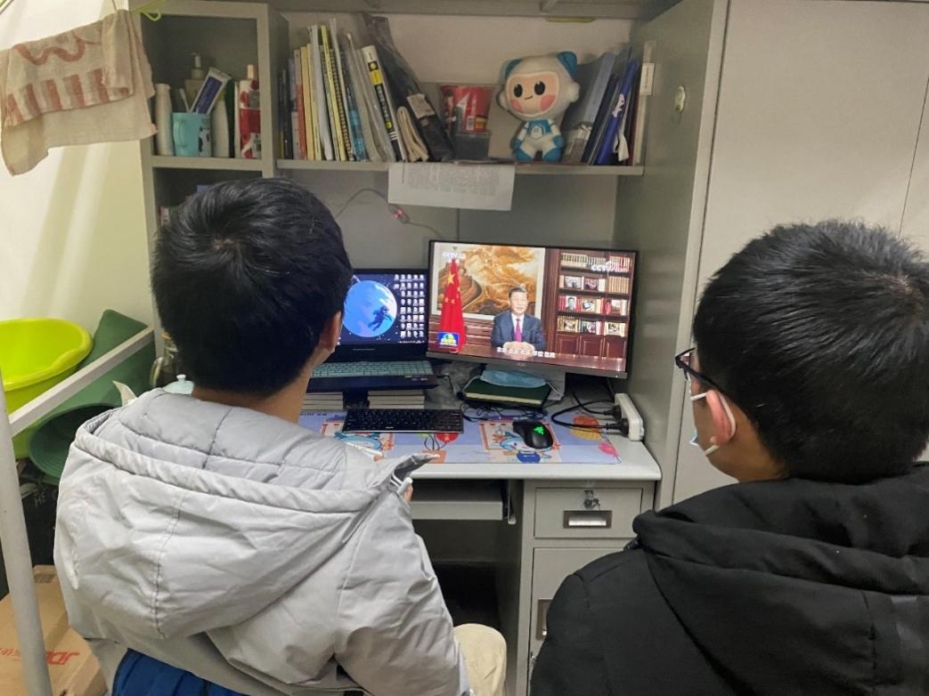 硕1914党支部孙浩珲与舍友一同观看并热议习近平总书记新年贺词