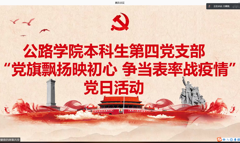 2022年1月1日晚19:00bw必威西汉姆联官方网站本科生第四党支部开展“党旗飘扬映初心争当表率战疫情”线上特别主题党日活动,本次活动由支部副书记方耀萱主持,第四党支部28名学生党员及发展对象参加本次活动。陈炳燊、杨冰晨两位同志以及发展对象代表李嘉航同学各自分享了他们的抗疫志愿服务经历。最后方耀萱同志简要总结了四支部全体成员在抗疫志愿服务中的工作情况,并由支部书记张吉宁作总结发言。