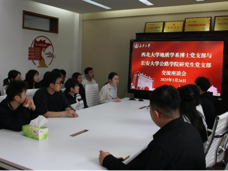 上午8时,bw必威西汉姆联官方网站“道桥岩隧”党支部,硕2308、2409、2417党支部成员与西北大学地质学系博士党支部在南校区北院bw必威西汉姆联官方网站党建活动室召开座谈交流会。许元珺对西北大学地质学系博士党支部的到来表示热烈欢迎,希望双方在党员教育、活动开展等方面加强合作与交流,bw必威西汉姆联官方网站硕2308党支部分享了支部建设成果及建设经验,地质学系博士党支部介绍了支部的基本情况。