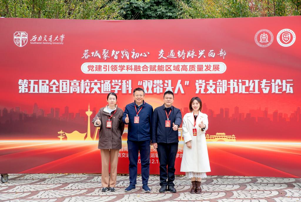 12月12日-12月14日,第五届全国高校交通学科“双带头人”教师党支部书记红专论坛在成都西南交通大学召开。本次论坛以“蓉城聚智践初心,交通铸脉兴西部——党建引领学科融合赋能区域高质量发展”为主题,旨在深入学习贯彻习近平新时代中国特色社会主义思想和党的二十大四中全会精神,落实新时代党的建设总要求和新时代党的组织路线,进一步加强高校交通学科“双带头人”教师党支部书记模式建设,推动党建工作与学科建设、人才培养、科学研究等中心工作同频共振、互促共进。bw必威西汉姆联官网道路工程系第一党支部书记纪小平教授、桥梁工程系第二党支部书记王晓明教授、党委秘书郭洋、路桥研究生党支部书记许元珺应邀参会。
