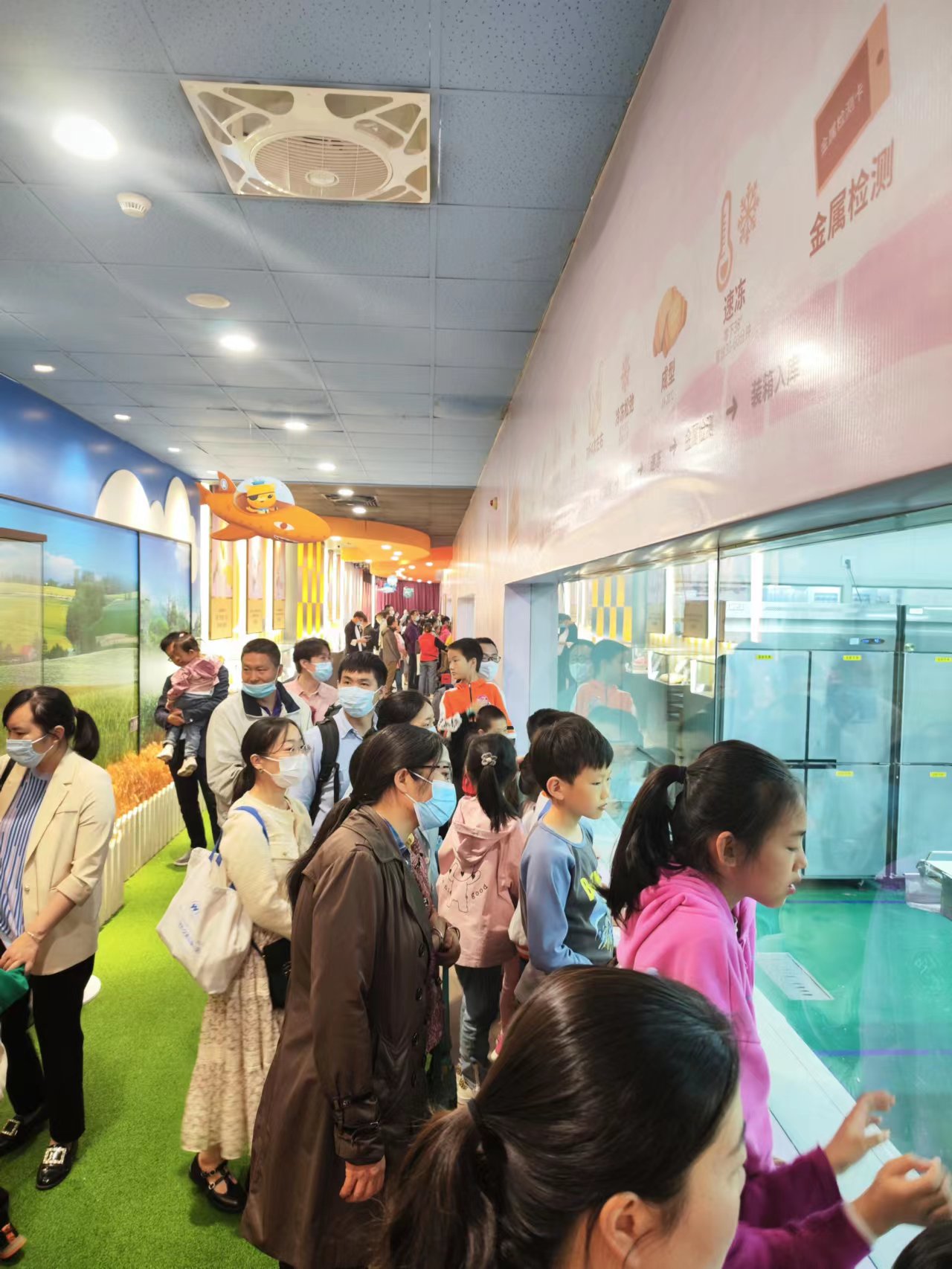 活动最后是参观环节。教职工与孩子们在工作人员的分组带领下,通过透明的玻璃参观了面包、蛋糕从面粉到成品制作的全过程,科普相关知识,扩充了孩子们的知识眼界。